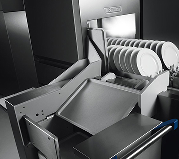 For this situation and for all specific practical requirements for flight-type dishwashers, HOBART provides the solution with the innovative and unique twinLINE dishwashing organising system.