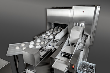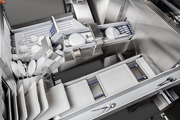 Ils se composent d'une unité de séparation automatique, d'un lave-vaisselle FTNi pour les plateaux et les couverts, et d'un lave-vaisselle FTNi extra-large avec un tapis séparé pour les bols et les assiettes.